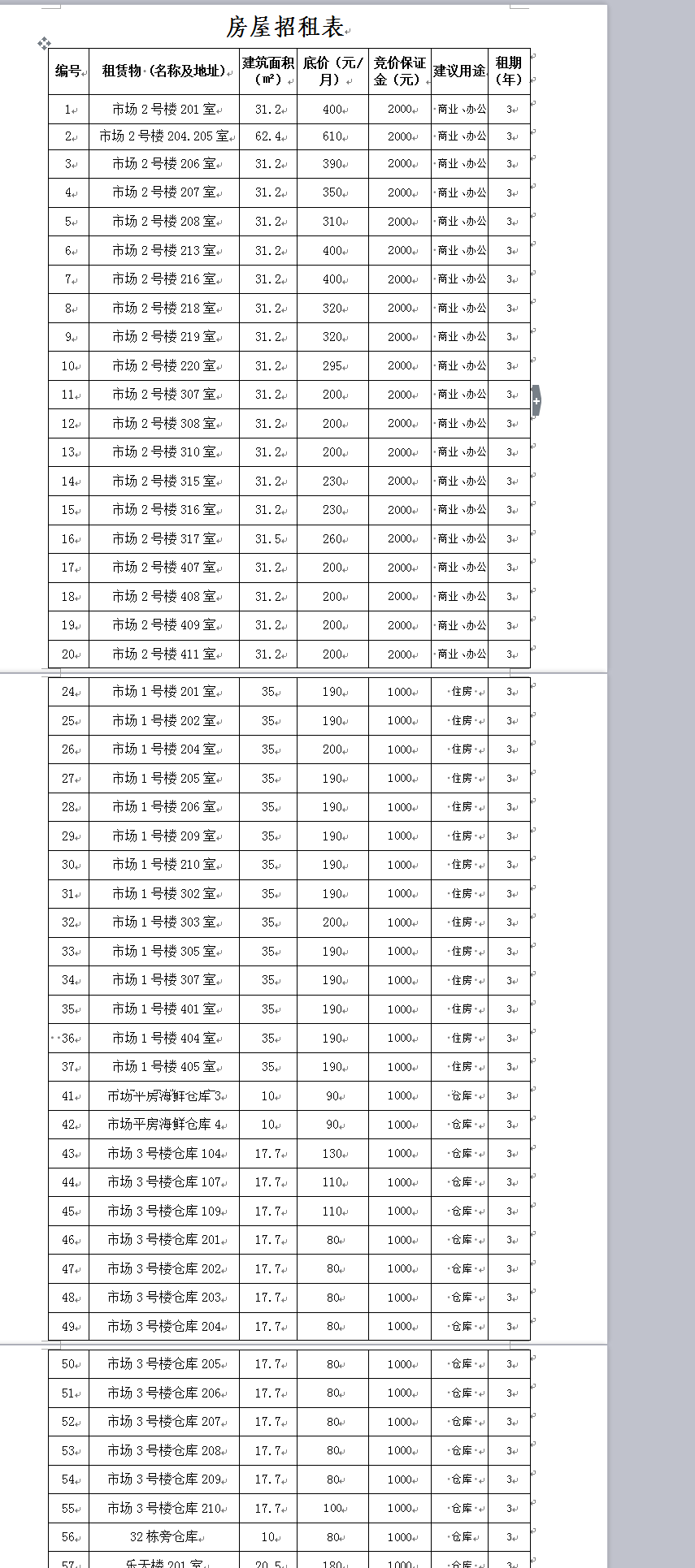 詳見《房屋招租表》